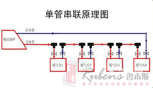 优点:暖气片串联比较节省材料,只需要一根管子,安装成本较低,节省空间;